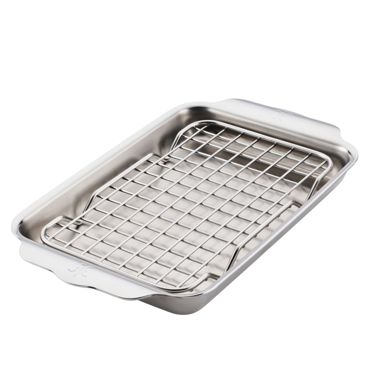 Tri-ply clad stainless steel baking pans are thermal tested and engineered to be warp-resistant, maintaining their shape for a lifetime of oven baking and roasting