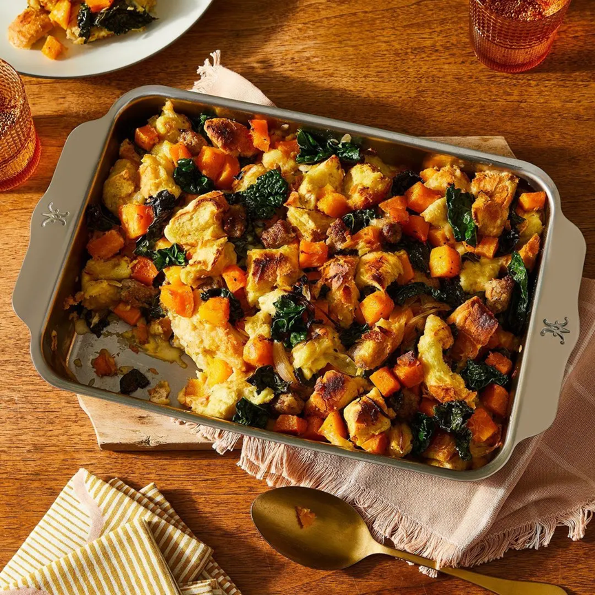 Versatile vessels are designed for oven to table presentation, perfect for holiday entertaining.